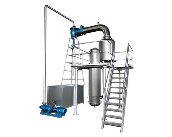 該設(shè)備為單效連續(xù)式外循環(huán)真空濃縮設(shè)備,適用于熱敏性物料(如果汁、蔬菜汁、藥液等流動性的物料)在真空低溫條 件下連續(xù)蒸發(fā),達到濃縮果汁的效果。